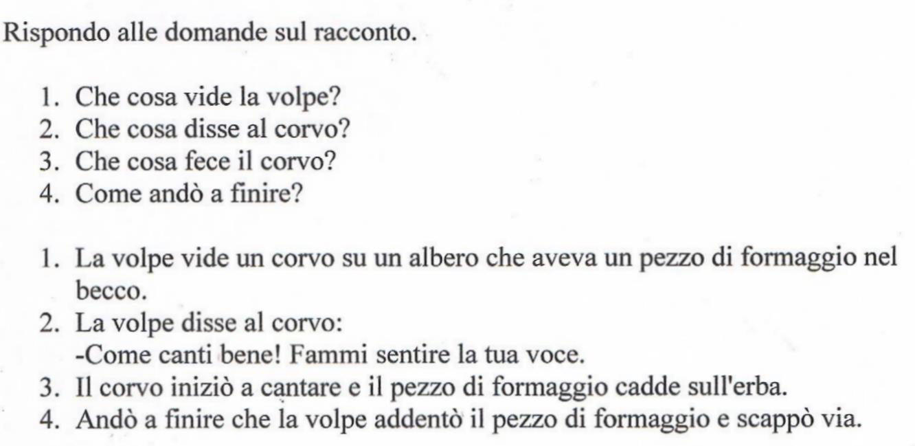 Lettura e comprensione del testo "Il corvo e la volpe".