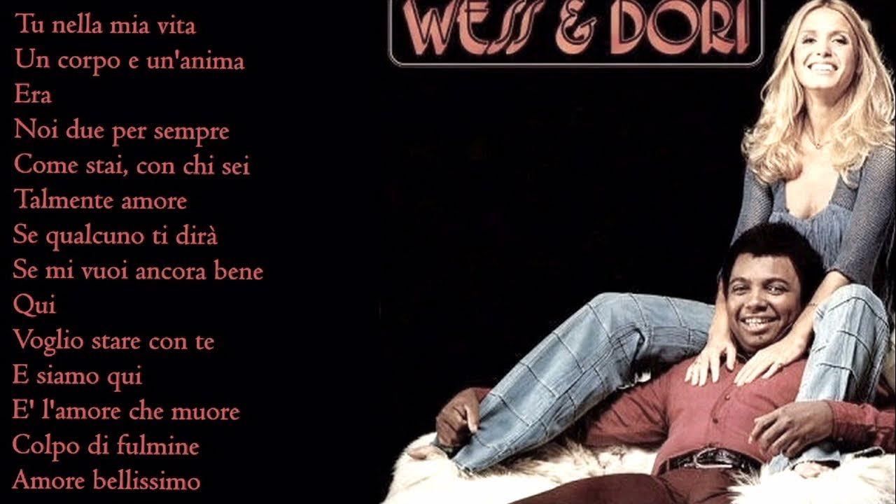Wess e Dori Ghezzi - Voglio stare con teSe parli solo tuspiegarti non potròche cosa c'è in meDistrattamente tuti guardi in giro e poimi chiedi che hoVoglio s.. Wess & Dori Ghezzi sono stati un duo musicale composto dall'italiana Dori Ghezzi (1946) e lo statunitense Wess, al secolo Wesley Johnson (1945-2009).. Costituitosi nel 1972 su iniziativa della comune casa discografica Durium, il gruppo partecipò a due edizioni del Festival di Sanremo e rappresentò l'Italia all'Eurofestival 1975 classificandosi terzo. Si sciolse nel 1979 quando i due membri.
